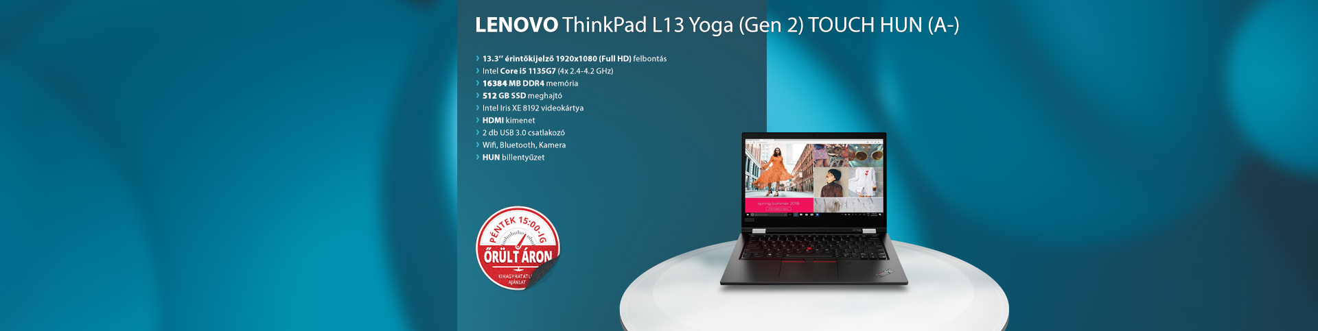Kijelző:13.3" - 1920x1080 pixel (Full HD)