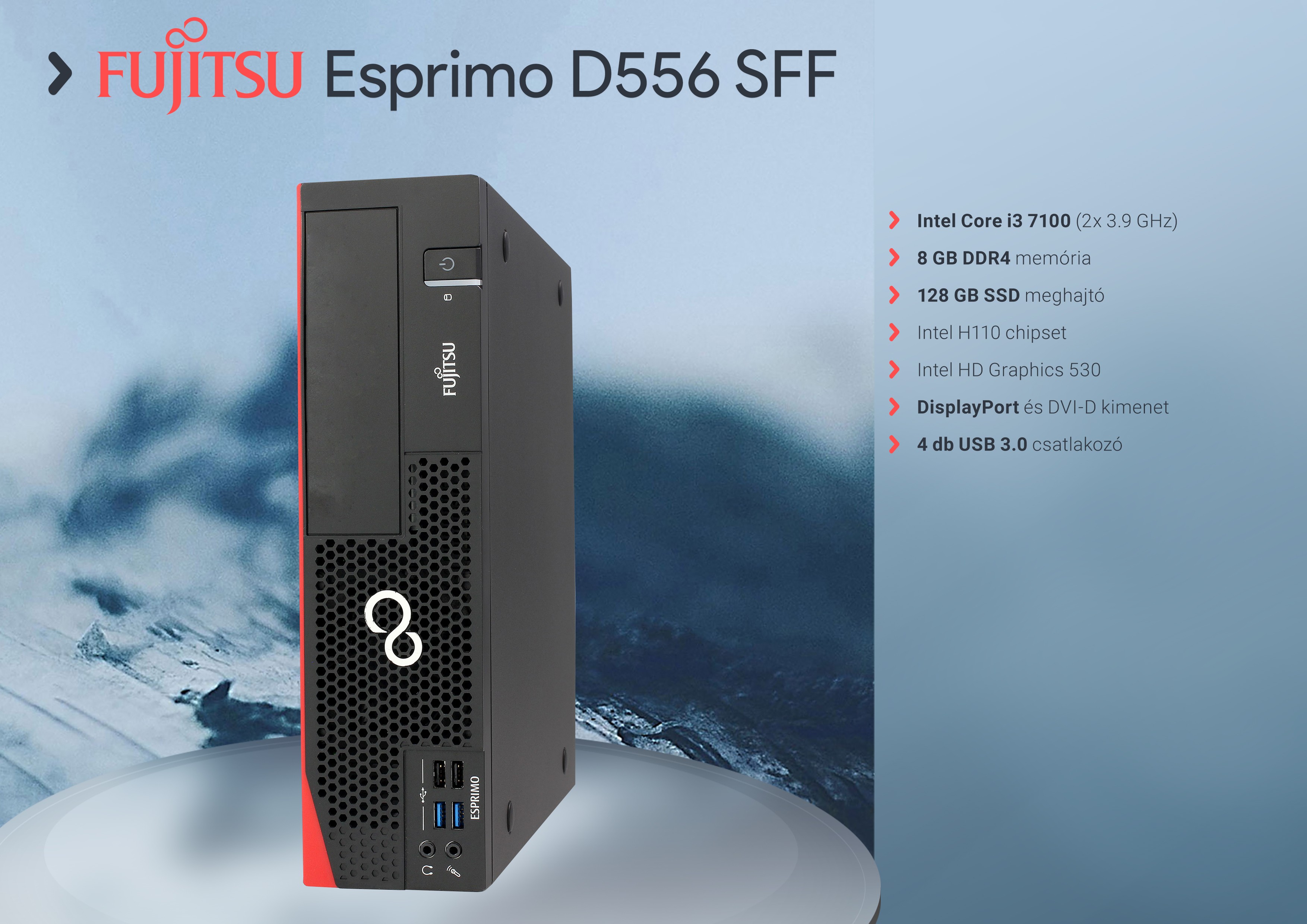 Intel Core i3 7100 3.90 GHz sebességű processzor, 8192 MB DDR4 memória (2133 MHz) memória, 128 GB SATA3 SSD, slim méretű SATA DVD író optikai meghajtó, Intel® H110 chipset, számítógépház
